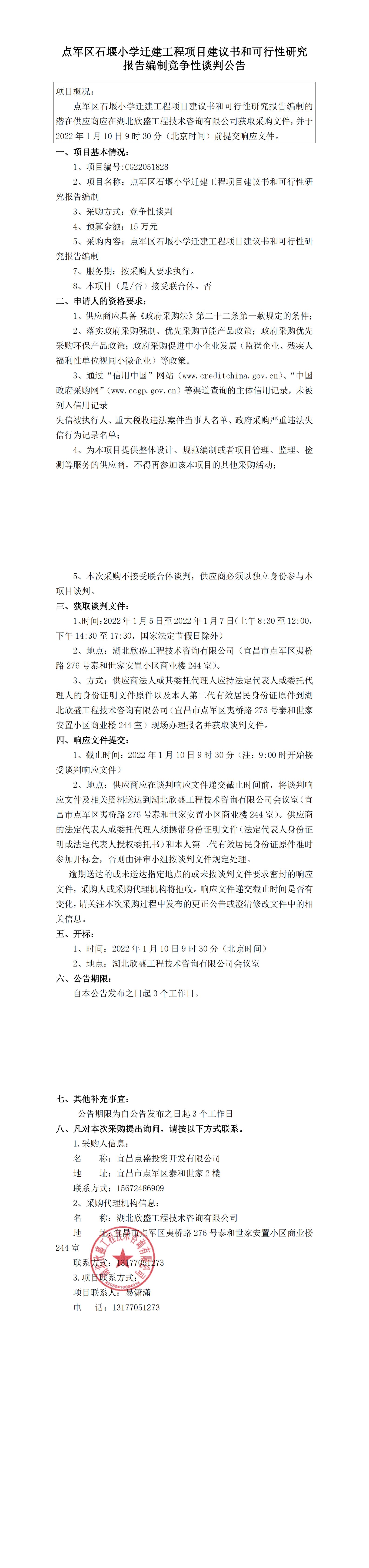 點(diǎn)軍區(qū)石堰小學(xué)遷建工程項(xiàng)目建議書和可行性研究報告編制競爭性談判公告