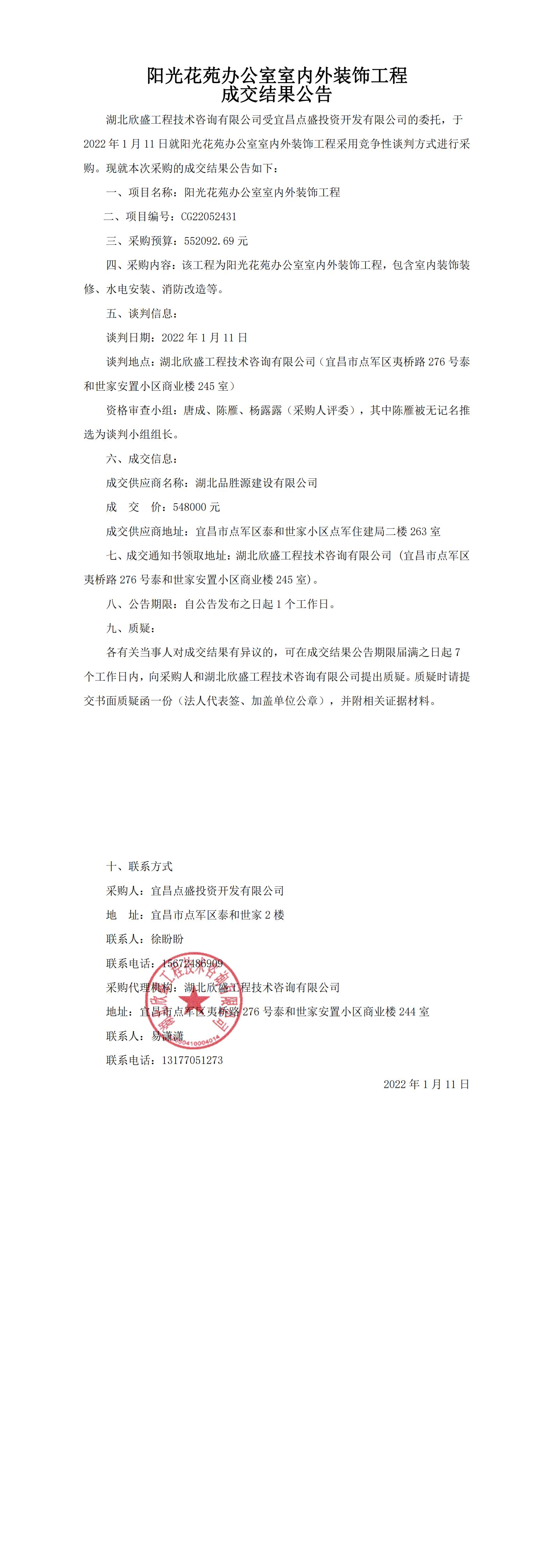 陽光花苑辦公室室內(nèi)外裝飾工程成交結(jié)果公告