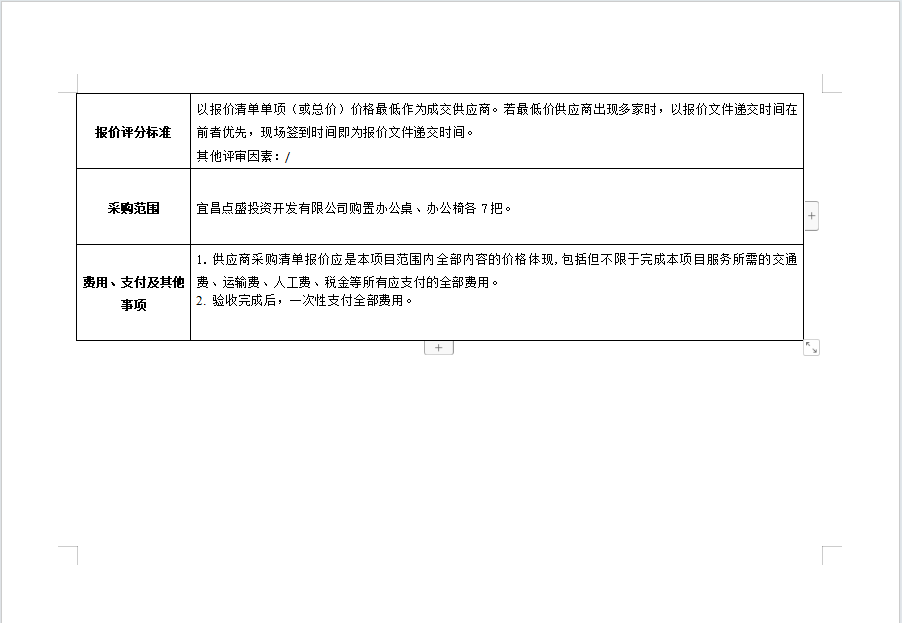 宜昌點(diǎn)盛投資開發(fā)有限公司2024年第二季度辦公桌椅采購項(xiàng)目 詢價公告