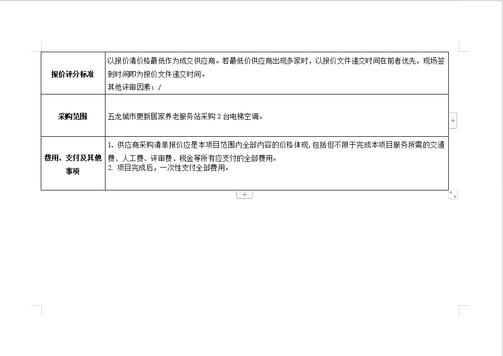 五龍城市更新居家養(yǎng)老服務(wù)站電梯空調(diào)采購項目詢價公告