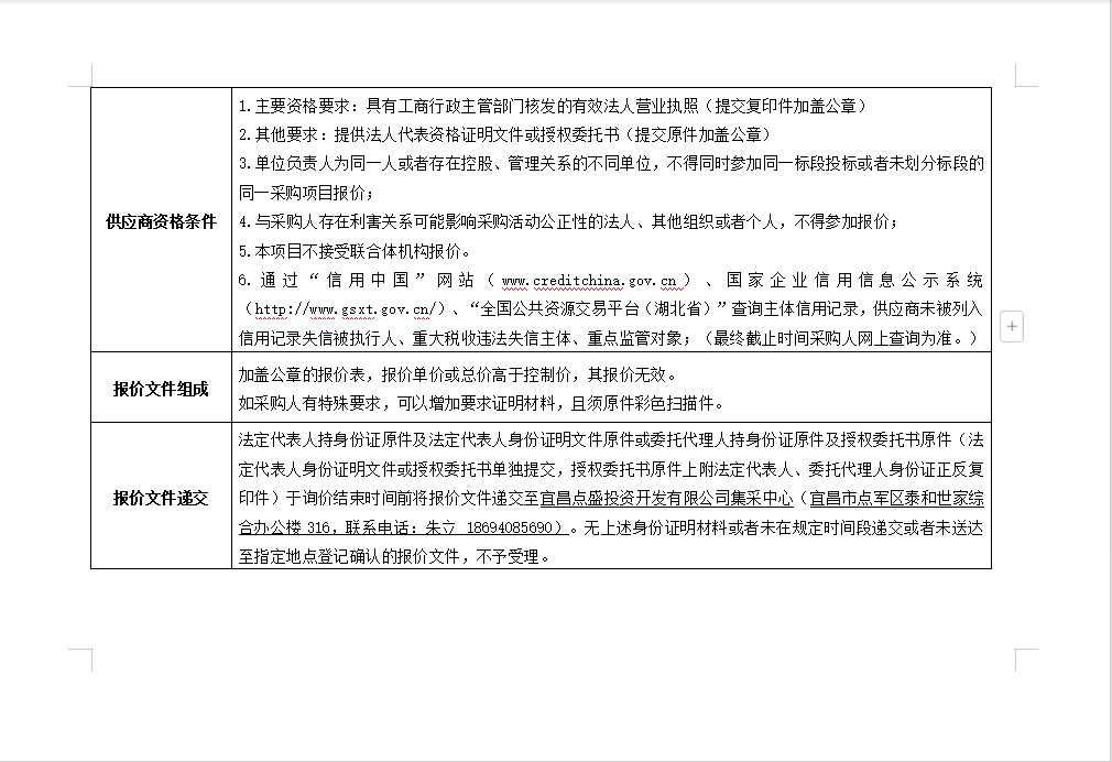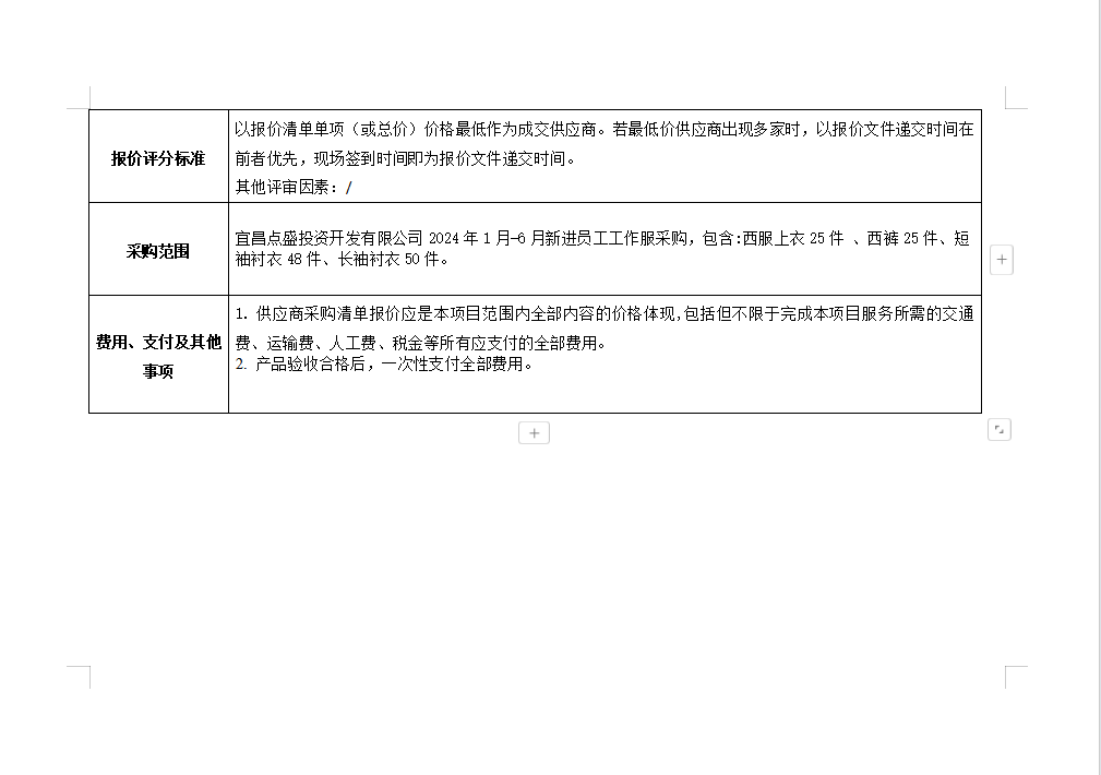 宜昌點盛投資開發(fā)有限公司2024年1月-6月新進員工工作服采購項目詢價公告