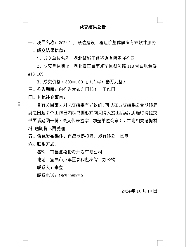 2024年廣聯(lián)達(dá)建設(shè)工程造價(jià)整體解決方案軟件服務(wù)成交公告