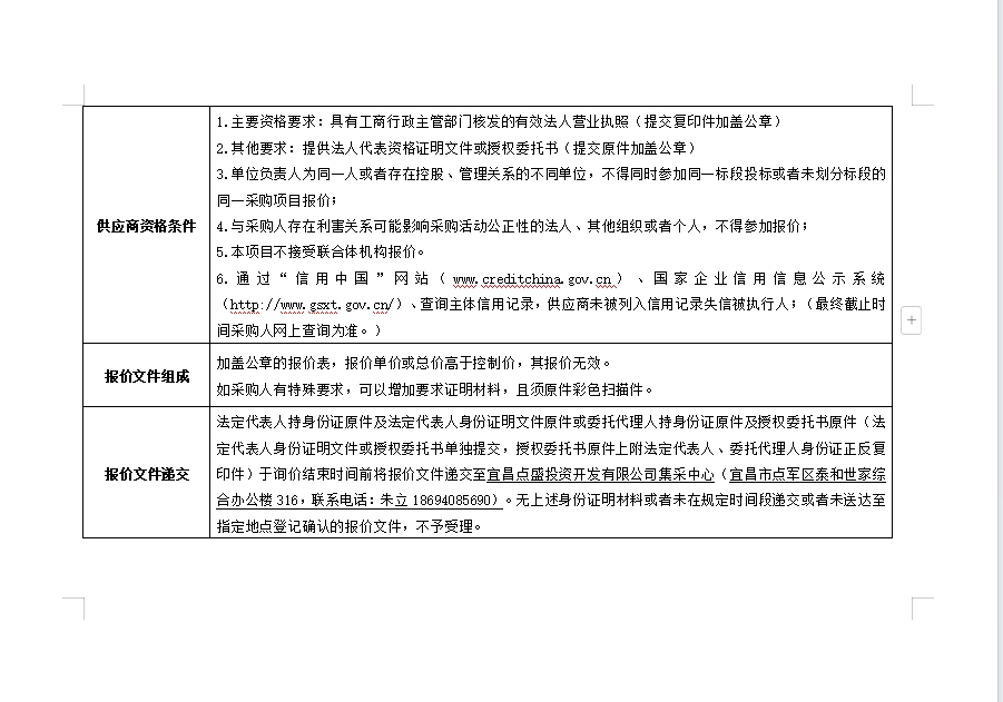 詢價(jià)公告