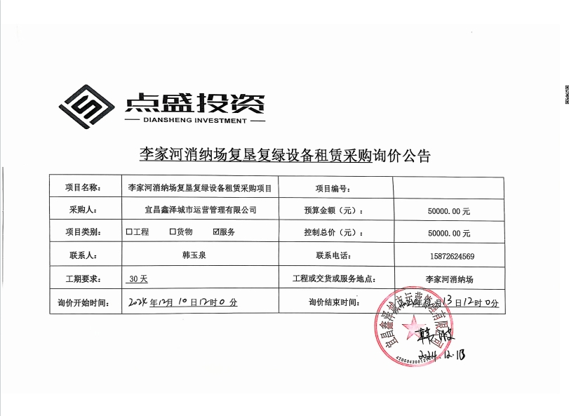 李家河銷鈉場(chǎng)復(fù)墾復(fù)綠設(shè)備租賃采購項(xiàng)目詢價(jià)公告