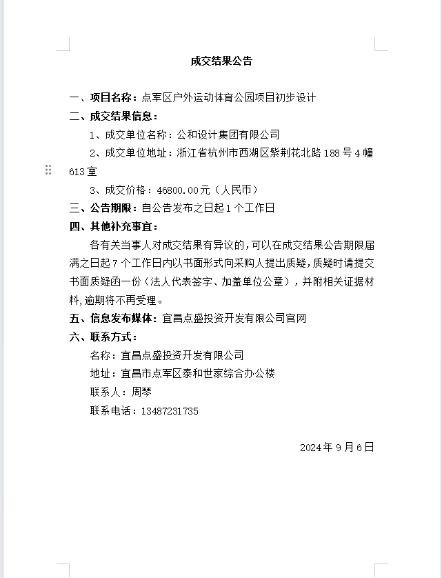 點(diǎn)軍區(qū)戶外運(yùn)動體育公園項(xiàng)目初步設(shè)計(jì)成交公告