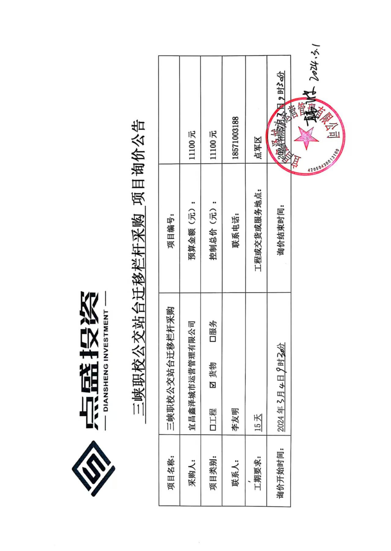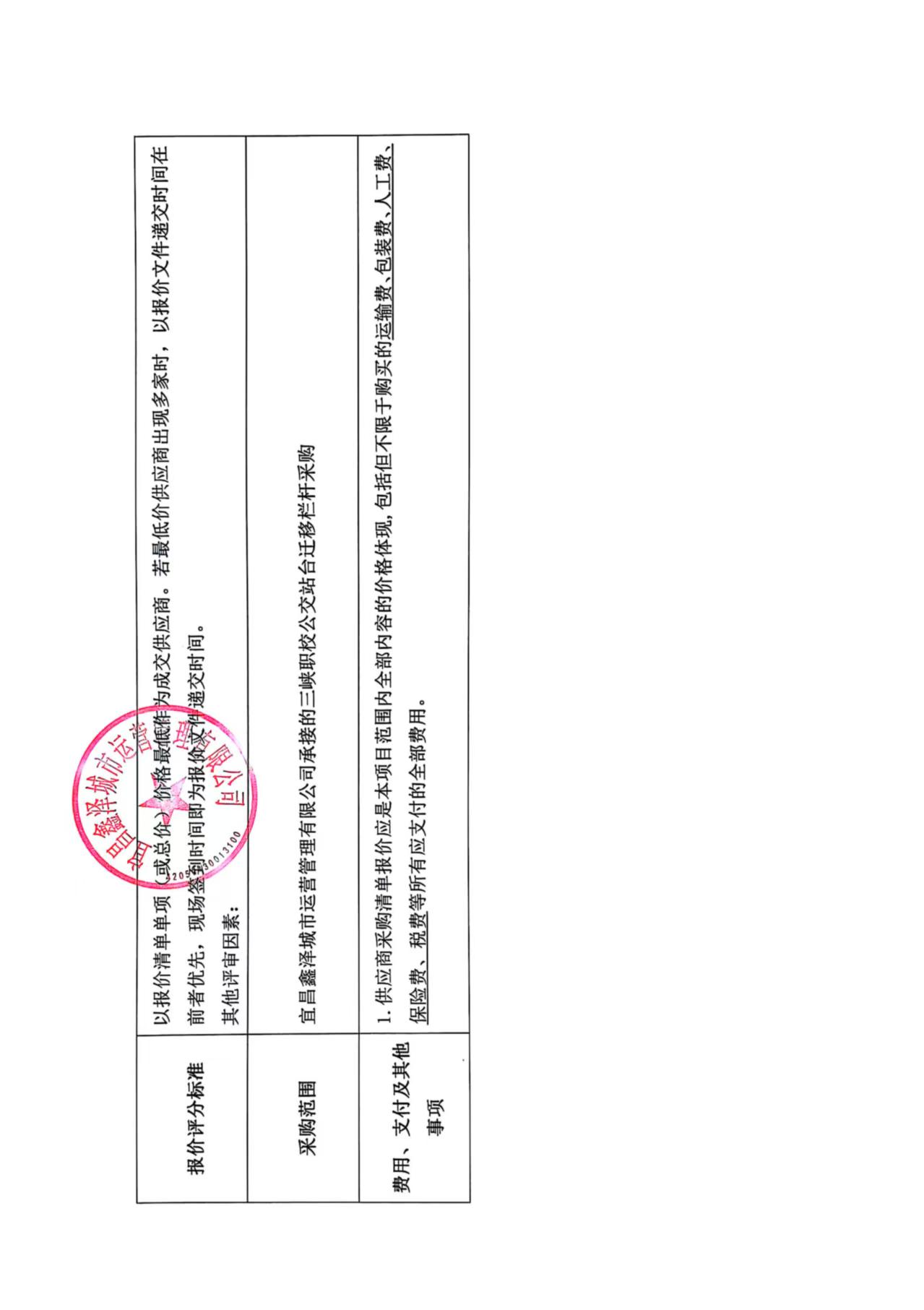 三峽職校公交站臺遷移欄桿采購詢價公告
