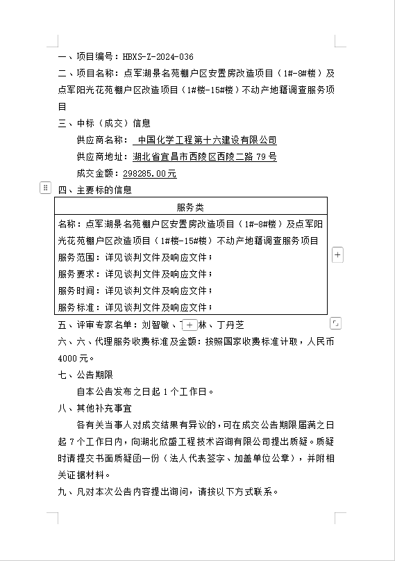 點軍湖景名苑棚戶區(qū)安置房改造項目(1#-8#樓)及點軍陽光花苑棚戶區(qū)改造項目(1#樓-15#樓)不動產(chǎn)地籍調(diào)查服務項目成交公告